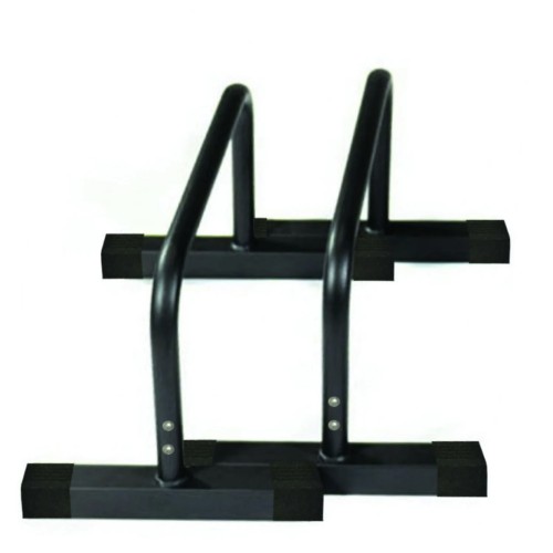 The mini parallel bars are made of metal for optimal stability and rubber feet.